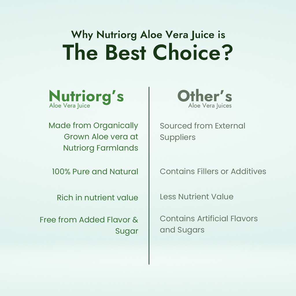 Aloe Vera has been a staple in Indian Ayurvedic history, known for its anti-inflammatory and antiseptic properties. Regular consumption of Nutriorg Aloe Vera Juice can help you maintain your health and wellness goals.