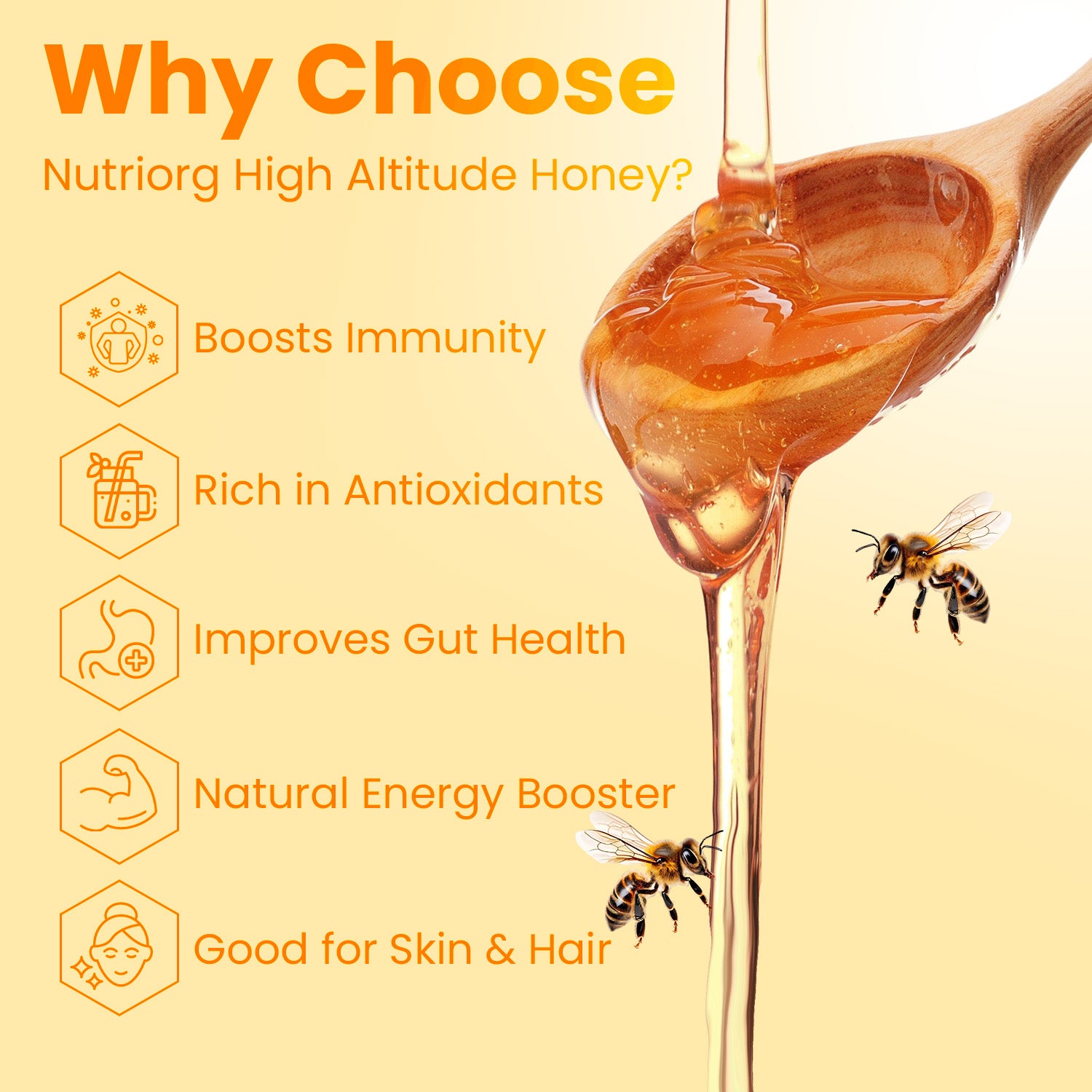 - Nutriorg Honey is 100% Pure and Unadulterated.