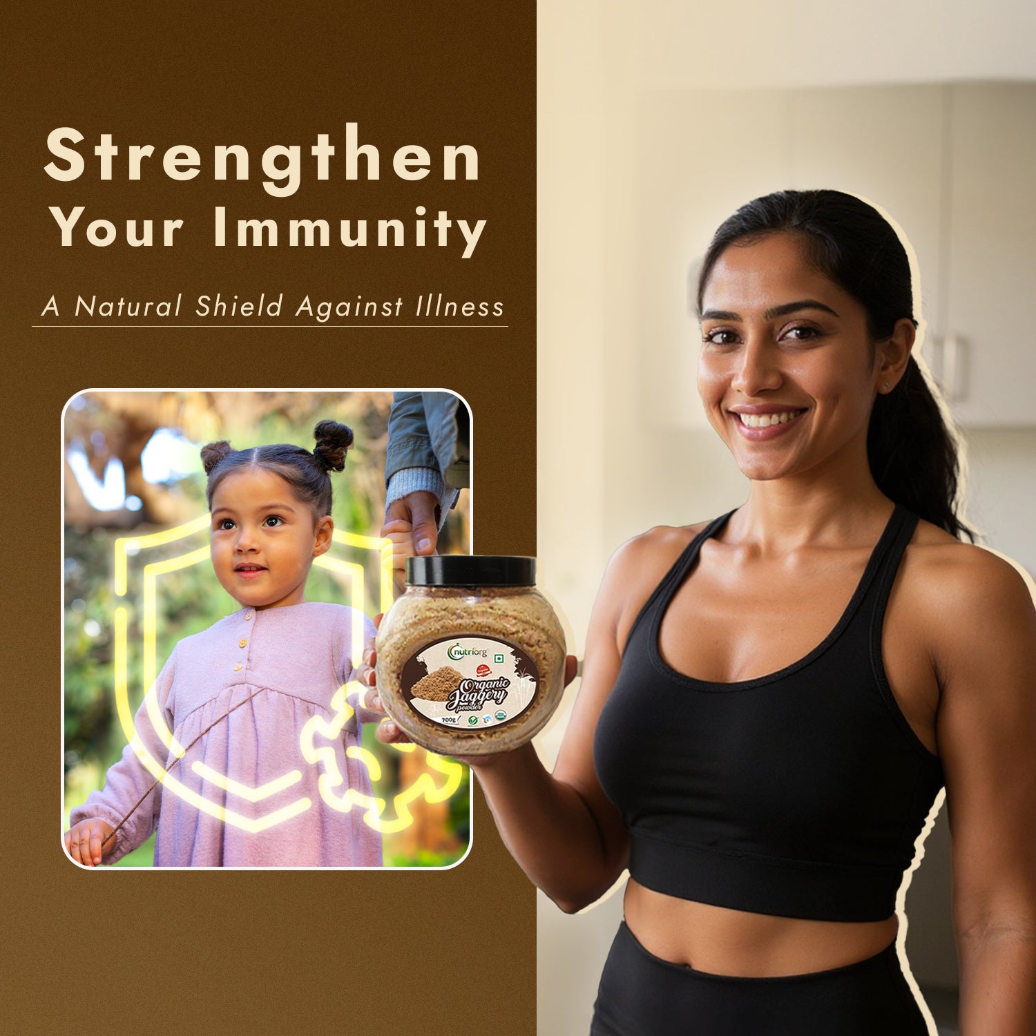 Nutriorg brings to you the best & traditionally made USDA certified organic jaggery. They are organically manufactured in the floodplains of river Ganga. Jaggery prevents constipation by aiding digestion. It activates the digestive enzymes of the body, thus helps in proper digestion of food. It acts as a detox, as it helps cleanse the liver by flushing out nasty toxins from the body. It helps boost resistance against infections, hence building a stronger immunity.