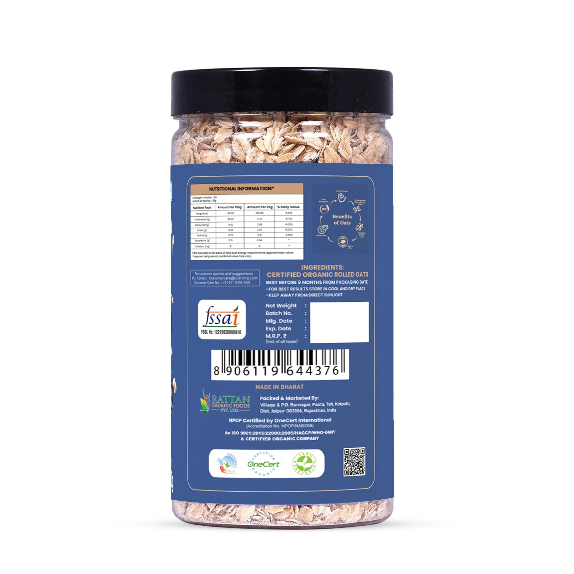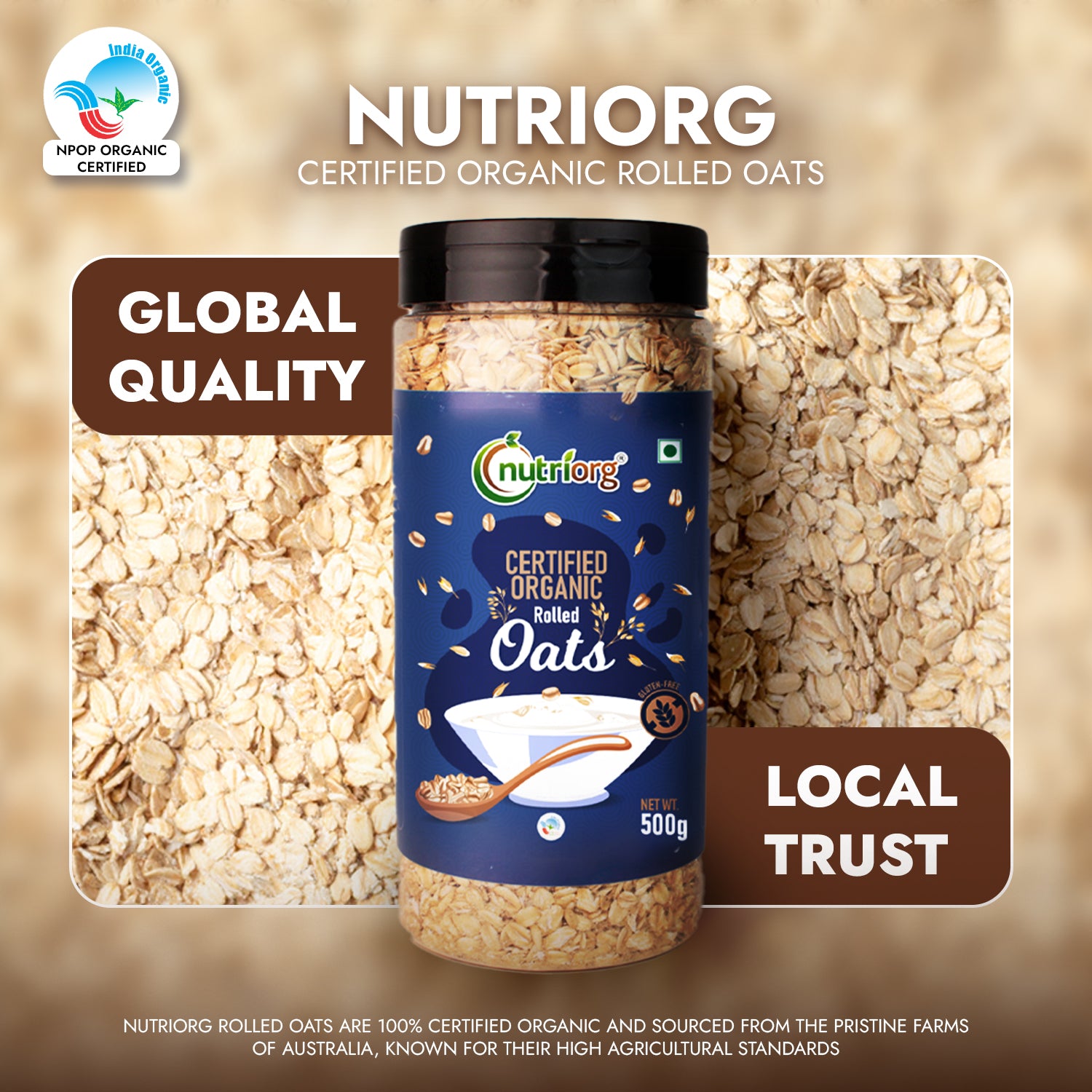 • The Nutriorg Organic Gluten Free Rolled Oats are protein-packed, full of fiber and low on fat.