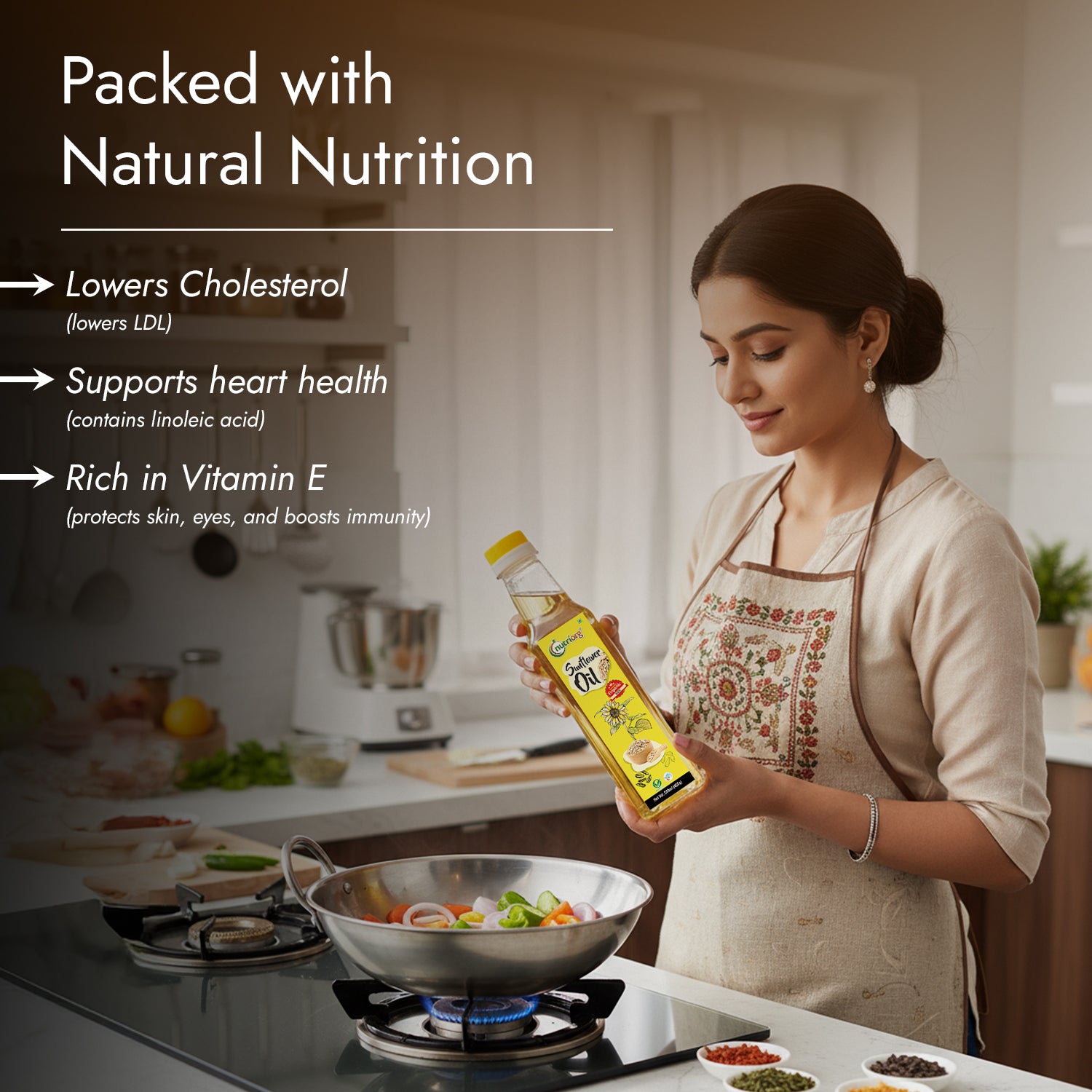 Nutriorg brings certified sunflower oil that is hygienically extracted from organically grown and cultivated sunflower. It has added advantages for your health since it is multi-faceted oil and is organically grown. Sunflower oil is considered an all-purpose cooking oil. Sunflower oil is a light, vegetable-based oil that's high in vitamin E and can be used as a moisturizer. It's also great for cooking since it doesn't burn easily and has a mild flavor. It's also rich in omega-6 fatty acids, which can help you maintain a healthy weight and reduce inflammation in the body.