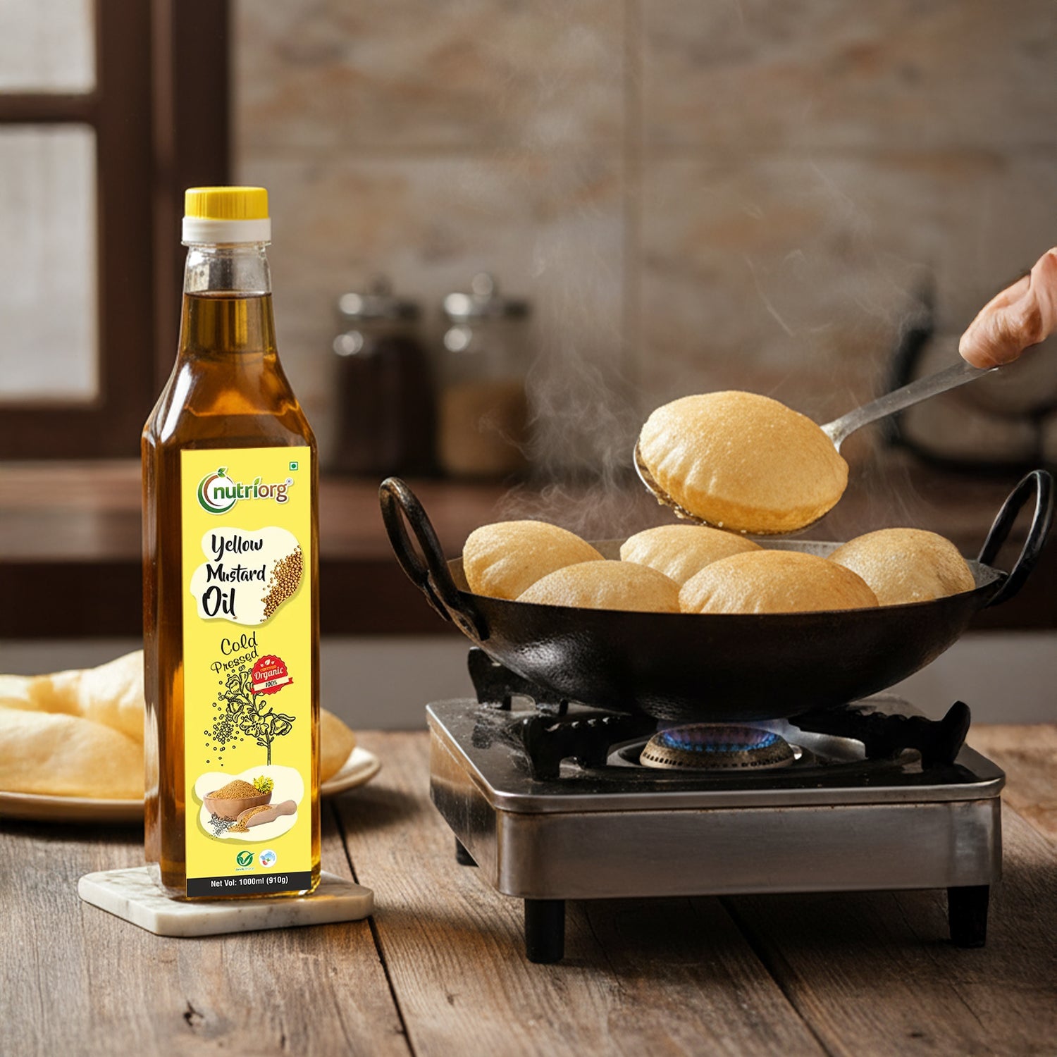 Nutriorg Yellow Mustard oil is certified . This oil is Cold Pressed and 100% natural. Good source of Vitamin K and omega -3 and 6. The oil is good for the skin. MUFA which is very important for our health monounsaturated fatty acids (MUFA) come under polyunsaturated. Yellow Mustard oil is full of MUFA which is very essential for health. It is good for the heart, lightens skin, helps in hair growth, prevents premature graying of hair lowers bad cholesterol in the body, thus keeping a check on blood fat levels and helping in circulation. Yellow Mustard oil has anti-bacterial, anti-fungal and anti-viral properties. Yellow Mustard oil is loaded with vitamin E, an essential nutrient for the skin. Yellow Mustard oil has high levels of both alpha-linolenic acid and erucic acid. Yellow Mustard oil is full of MUFA which is very important for our health.