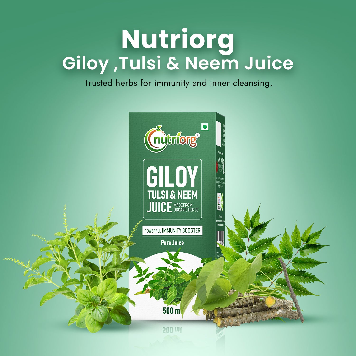 Stay healthy, energized, and rejuvenated with Nutriorg Giloy Tulsi Neem Juice - your perfect companion for maintaining wellness on the move!