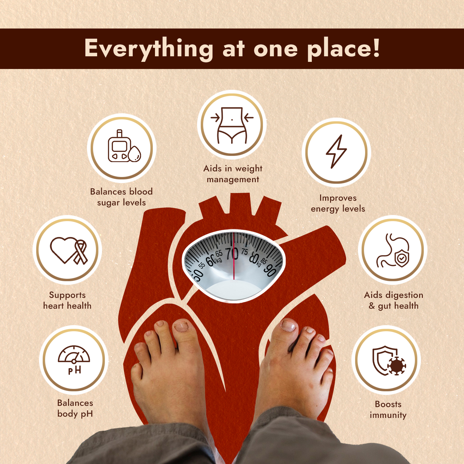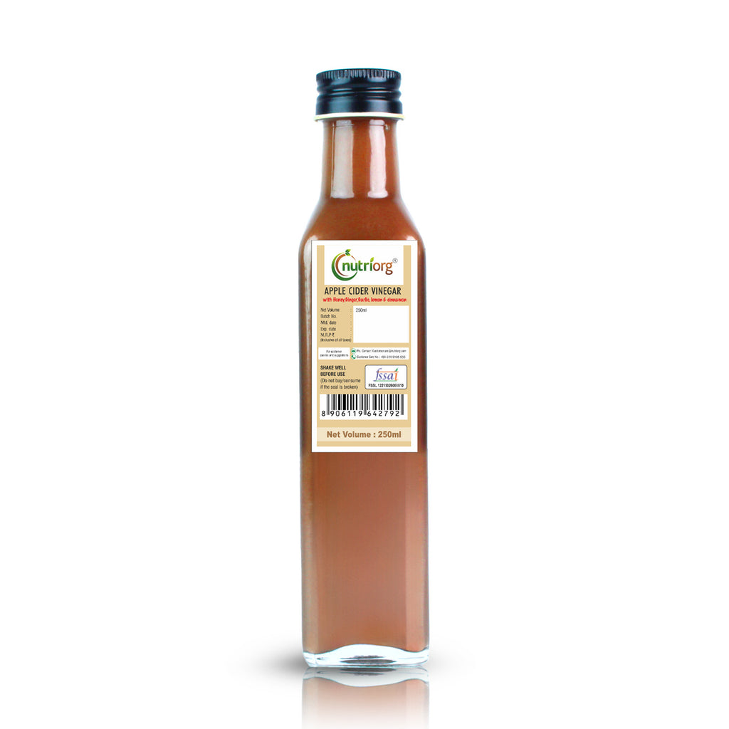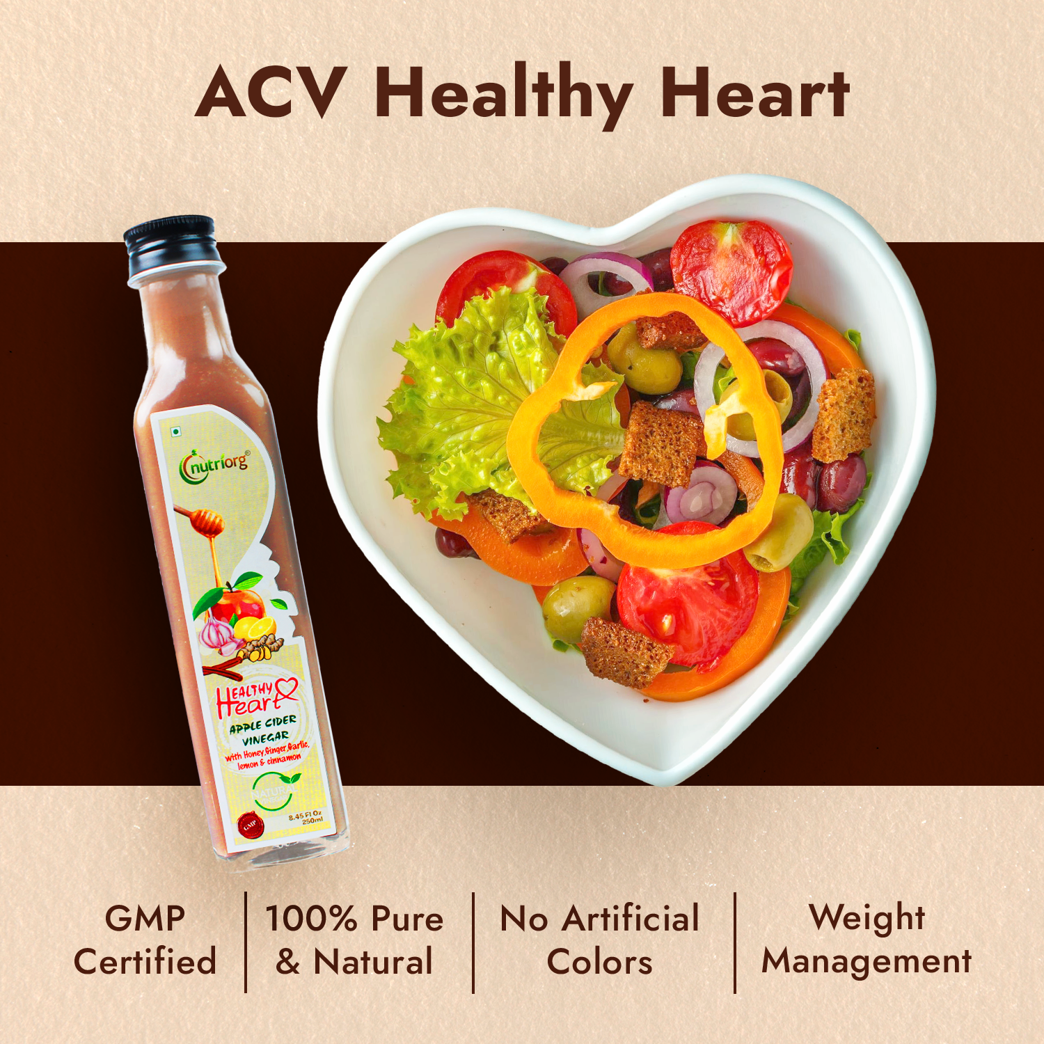 Nutriorg Healthy Heart Apple Cider Vinegar is a unique formulation of Apple Cider Vinegar with honey, ginger, garlic, lemon, and cinnamon. This concoction of ingredients is a very strategic mix as the ingredients were all used since time immemorial for improving cholesterol levels in the body. They were used to cut the stubborn cholesterol that would later lead to various bodily problems. This formula contains 5 traditional organic herbs which work in synergy with Heart Health. Nutriorg’s Healthy Heart Apple Cider Vinegar improves heart and overall health.