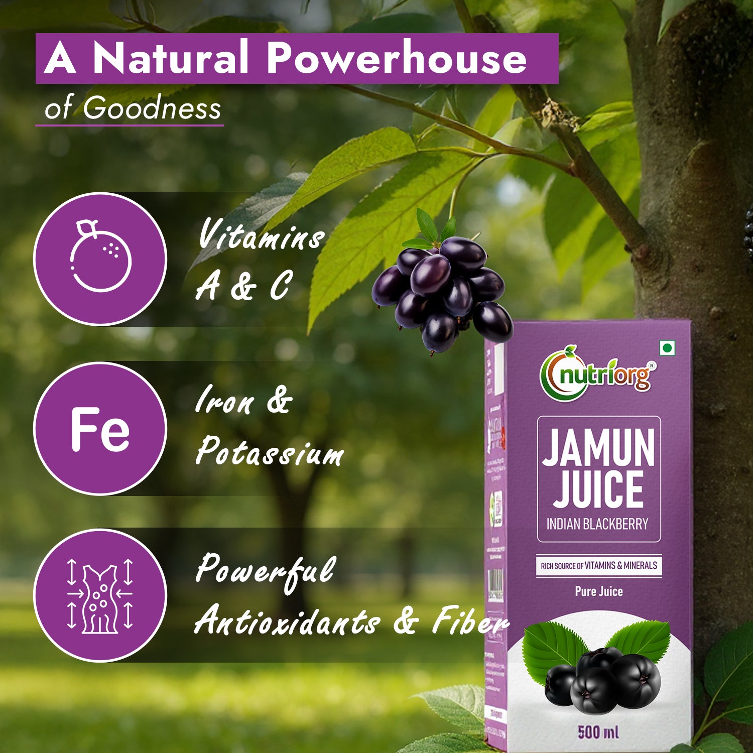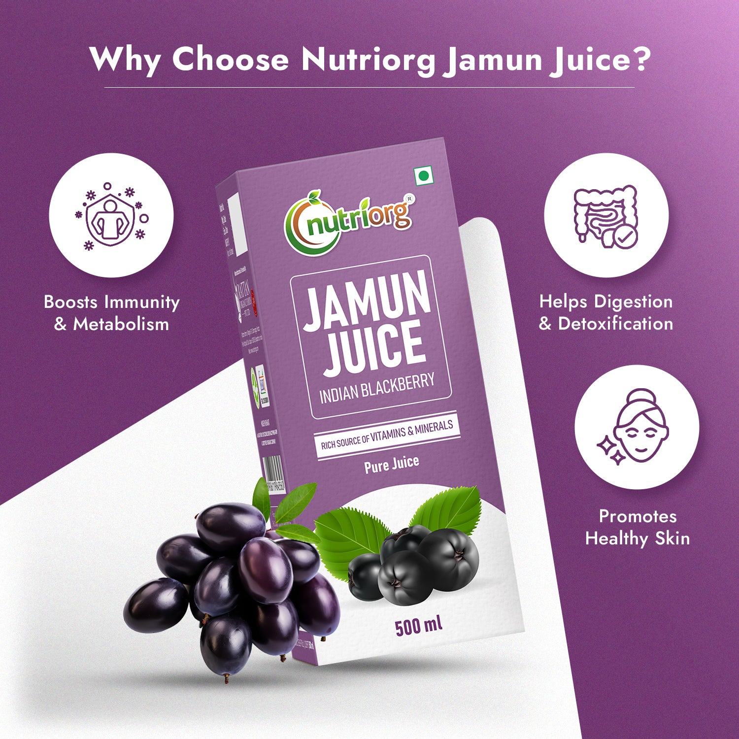 Nutriorg Jamun Juice is a double detoxifying agent which removes harmful toxins in the body and improves metabolism