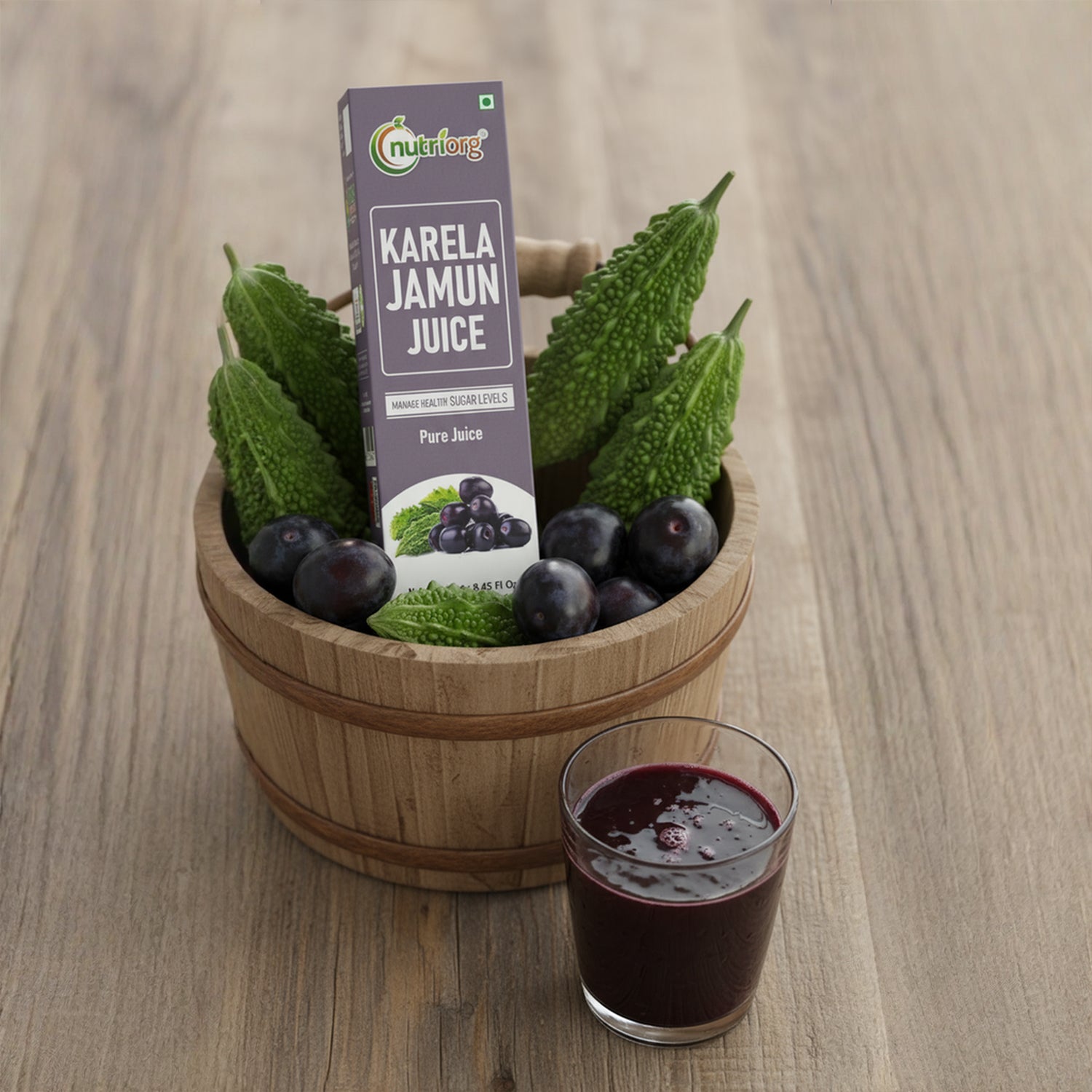 Discover the natural health benefits of Nutriorg Karela Jamun Juice, a potent blend of bitter gourd (karela) and Indian blackberry (jamun) extracts. Known for their rich nutritional profiles and antioxidant properties, this juice is a popular choice for supporting blood sugar regulation and overall well-being.