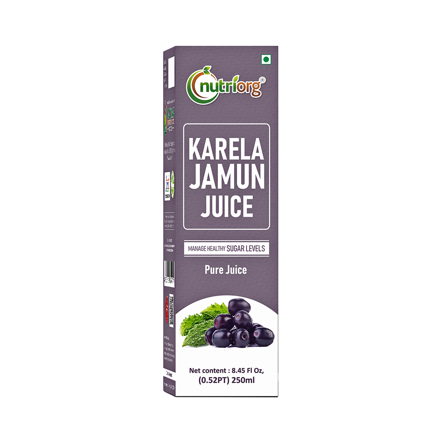 Nutriorg Karela Jamun Juice is derived from organic Karela and Jamun, sourced from pristine forests near Madhya Pradesh and Maharashtra. It harnesses the natural goodness of these ingredients to provide a holistic health tonic.