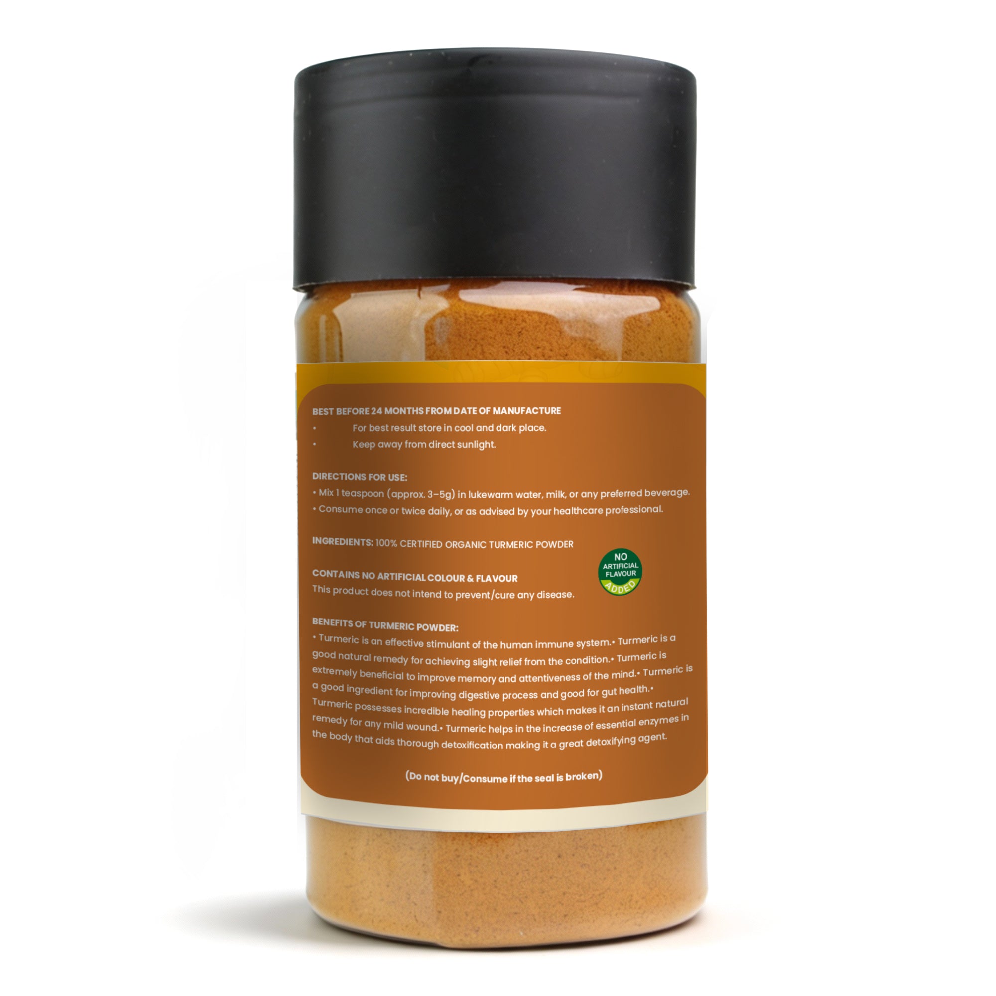 * 100% Certified Organic: Pure turmeric powder with no artificial colors, flavors, or additives.